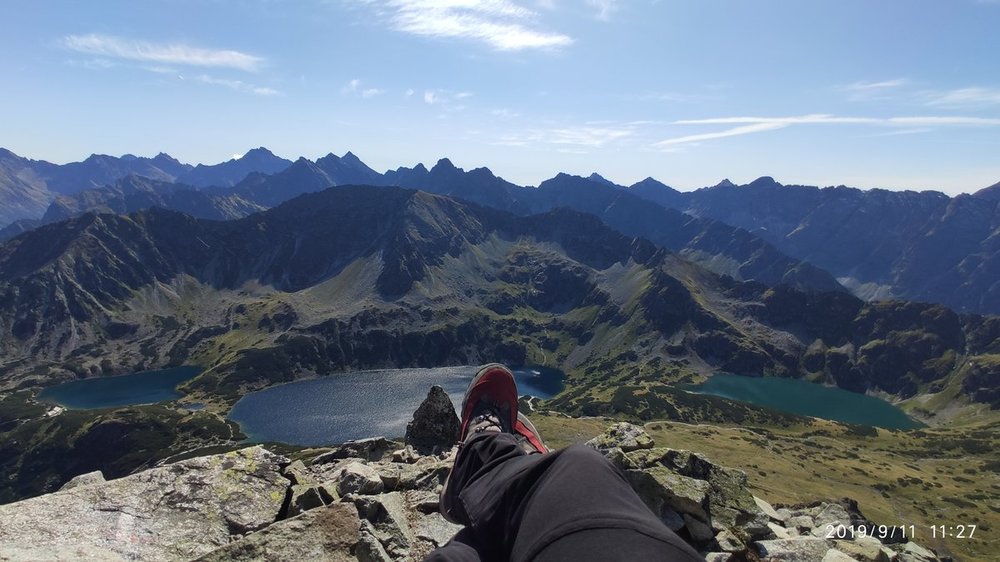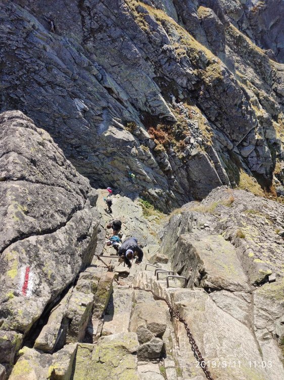 Czas na opis wczorajszego przejścia. Krótko zwięźle i na temat. Było bosko. Zacznę od początku. Pobudka godzina 1:00 przygotować śniadanko kawę i w drogę po szwagra (jego 2 wypad w Tatry). Rozpoczynamy podróż do Zakopca o 2:00. Na parkingu meldujemy się o 4:45, szybko zmieniamy obuwie, ubiór i w drogę o równej 5 ruszamy z Drogi Oswalda Balzera w stronę Kuźnic. Z nami już grupka 8 osób, która wędruje w tym samym kierunku ku szczytom. Po 1h30 min meldujemy się w schronisku ,a o 8:50 czyli po prawie 4 h jesteśmy już na Zawracie. Ku chwale ruszamy o 9:10. Pierwszym trudniejszym fragmentem jest Atak na Kozi Wierch legendarna drabinka wcale nie jest taka straszna ? na Kozim meldujemy się o 11:22 czyli 2h 10 min od rozpoczęcia Orlej. Kolejnym takim naprawdę mocnym akcentem był 20 metrowy kominek pod Czarnym Mniszkiem. Od samego patrzenia kręci się w głowie. Na Zadnim Granacie meldujemy się o 13 przejście Granatów zajmuje nam około 20 min ze względu na dużą ilość ludzi woleliśmy nie czekać. Od zejścia z Granatów zaczyna się bardzo trudny etap, każdy fragment prowadzący północną stroną zboczy był mega śliski do tego drobny żwir, który uciekał spod nóg. Tutaj najbardziej bałem się o zdrowie, tłok na szlaku i krótkie nogi nie pomagają Orla Baszta z raczej zejście z niej fantastyczne. Radze poćwiczyć szpagaty bo to się przyda. Kolejne fragmenty Buczynowej też trudne technicznie. Później już z bez większych problemów w większości idzie się chodnikiem. Docieramy do Przełęczy Krzyżne o 15:36 czyli Orlą zrobiliśmy w 6h 26min. Po drodze zrobiłem ponad 500 zdjęć i filmików, do tego od Zawratu zmagałem się ze straszliwymi problemami żołądkowymi. większość Orlej pokonałem nic nie jedząc schodząc z Krzyżnego byłem już wykończony. Gdy doszliśmy do dna Doliny Pańszczycy dostaliśmy kolejną nagrodę od losu za trud, pięknie pozujące kozice. przy samochodzie byliśmy o 19:15 a do domu wróciłem o 23:30. Podsumowując przejechane samochodem 410km, piesza wędrówka 26,5km, Czas wędrówki 14h 15min. Czas całej podróży 21h30min. Pogoda fantastyczna przez cały dzień słaby wiaterek lub jego brak słońce zjarało mnie na twarzy i karku. ?