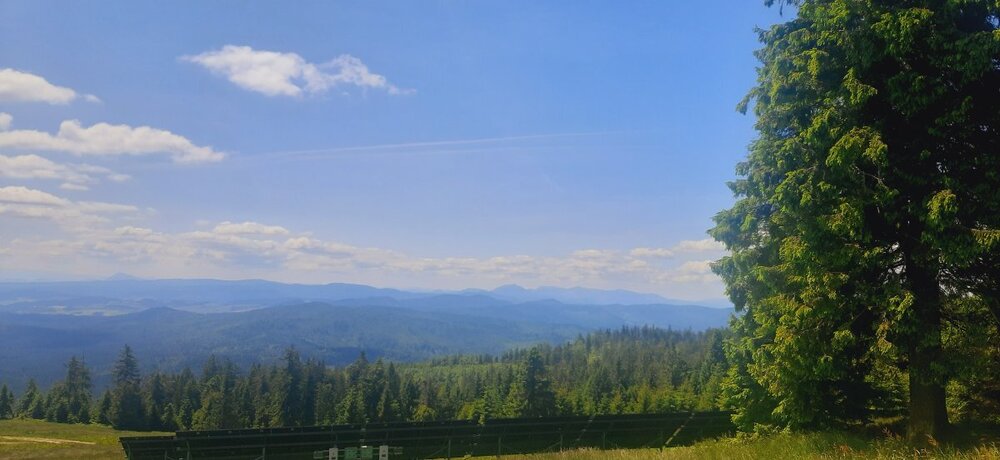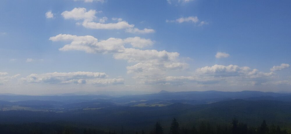 Po bardzo długiej przerwie spowodowanej niestety problemami zdrowotnymi udało mi się nareszcie pojechać w góry. Co prawda tylko spacer na Rysiankę ale cieszę się że jest jakiś progres bo już myślałam że góry będę oglądać tylko na zdjęciach. Pogoda była idealna, w słońcu ciepło, w lesie przyjemny chłód a na szczycie orzeźwiający wiaterek. Byłoby idealnie gdyby nie tłum który pojawił się nagle koło południa nie wiadomo skąd ( jakby jakiś desant zrzucili). Ale wcześniej przez 2 godziny mieliśmy halę prawie na wyłączność. Mój telefon ostatnio robi coraz słabsze zdjęcia ale widoki były wspaniałe : Babia, Pilsko Tatry, Mała Fatra....