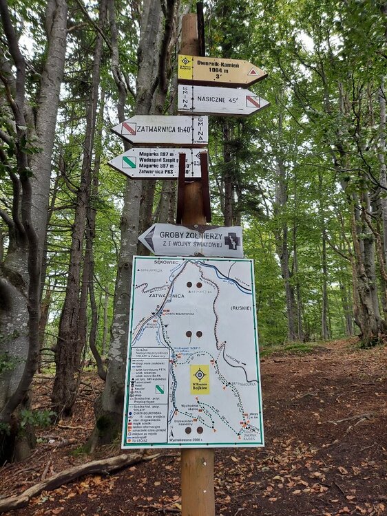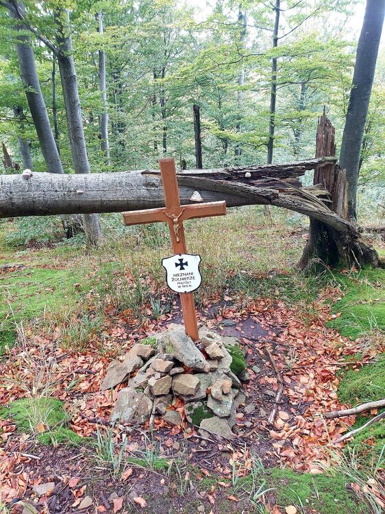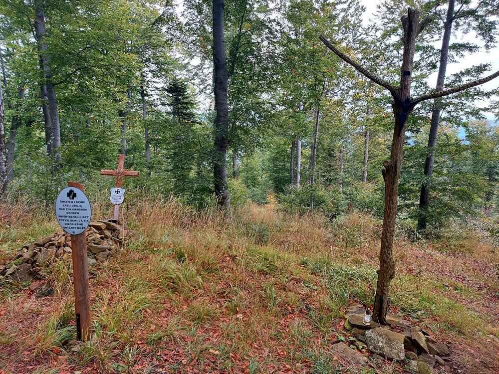 Bieszczady, Cmentarz z I wojny światowej. Dojdziemy tam idąc po widoki na Dwernik Kamień z Nasicznego albo z Zatwarnicy. Warto podejsc do tych leśnych mogił ludzi, którym przyszło tu zginąć.