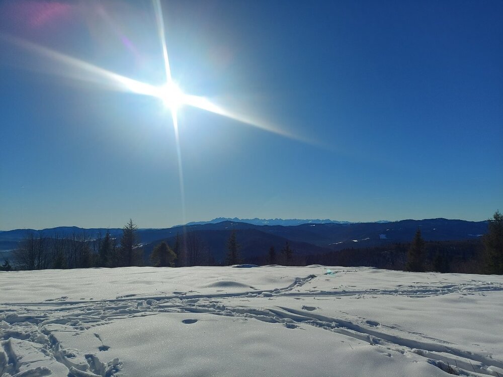 Beskid Wyspowy-Mogielica od Grębałówki Trasa ok, pogoda ok, pięknie słońce i ladne widoki z Polany Stumorgowej.Nie byłam tu dawno, jeszcze za czasów starej wieży widokowej, na która strach było wchodzić. Ta nowa taka bezpieczna, zupełnie inna, żadne wyzwanie na nią wejść Za to panorama bez zmian, ładnie widać było i Tatry i Babią