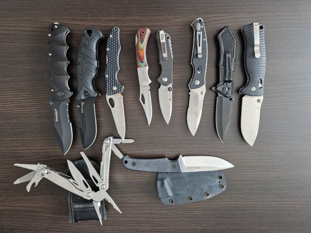 Panowie, (panie też jak mają) pochwalcie się jaki scyzoryk, nożyk a może multitool zabieracie ze sobą w plecaku na wyprawy i dlaczego akurat taki? Poniżej kilka moich folderów. Najczęściej np. na grzyby i w plecak zabieram marketowego topexa albo black foxa (te z oczkami w głowniach) bo małe lub płaskie no chyba, że będzie własnoręczne robienie kanapek to Ganzo, bo ma szerokie ostrze idealne do smarowania kanapek ?