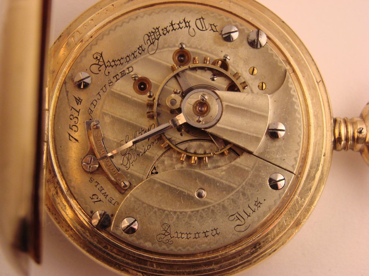 Aurora Watch Company z Aurora w Illinois (jak widać Illinois było jednym z dwóch "zagłębi" zegarkowych w USA)