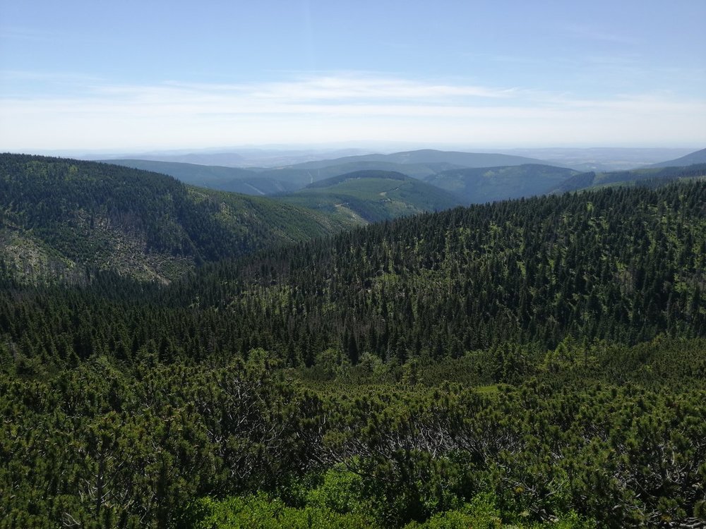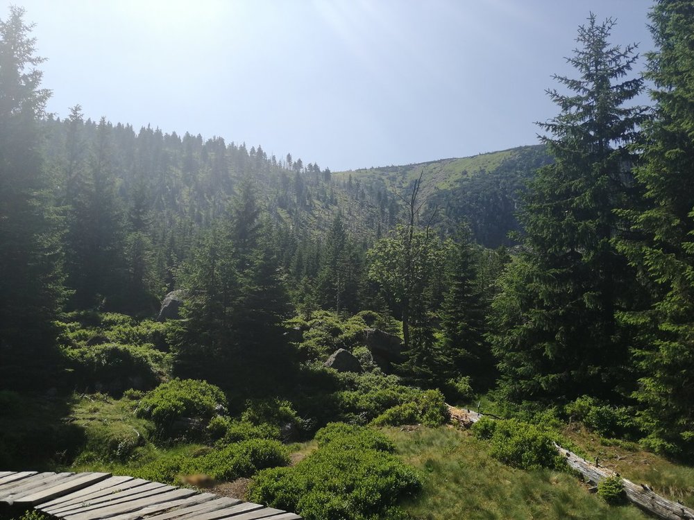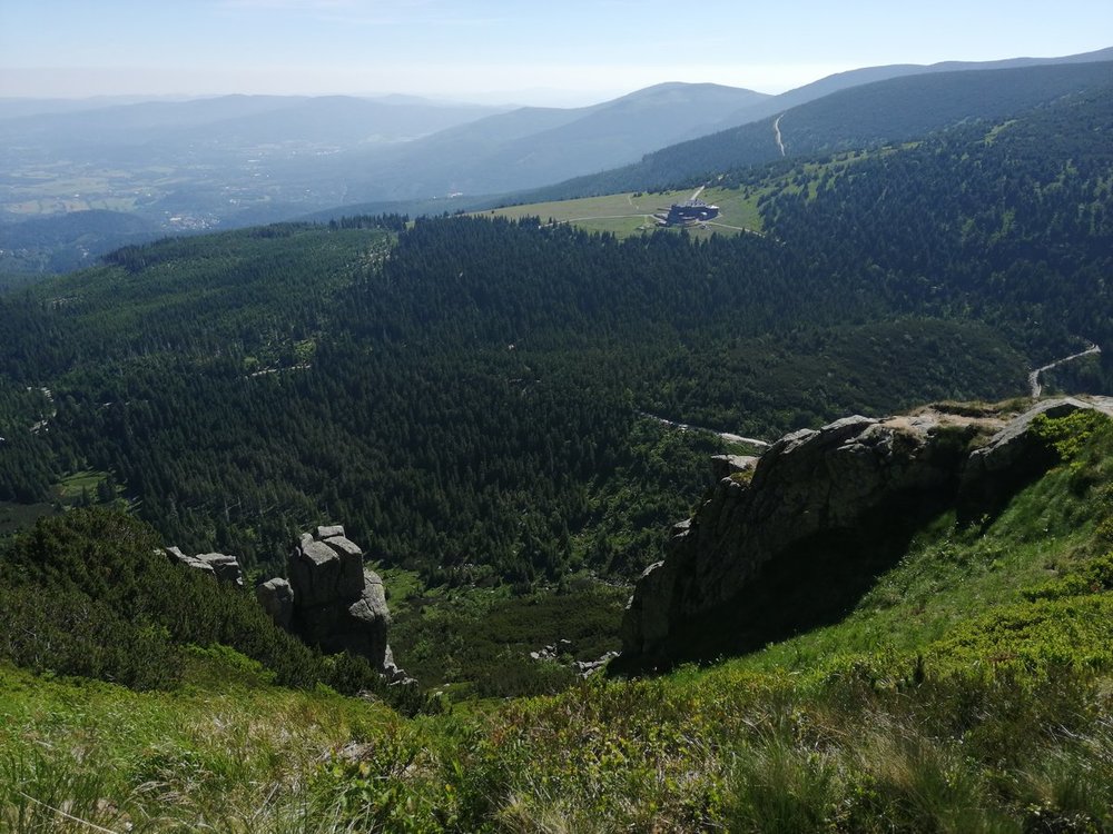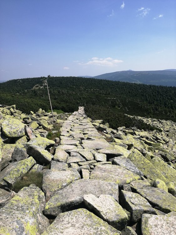 Ze Śnieżki warto skręcić w lewo, z Drogi Jubileuszowej w kierunku Czarnego Grzbietu. Tam można przejść nim albo odszukać ukrytą w kosodrzewinie wydreptaną ścieżkę oznaczoną na mapach jako Travers. Bardzo malownicze widoki na czeską stronę. ? Można dojść tą drogą (mało uczęszczaną) do czeskiego schroniska Jelenka, później do Sowiej Przełęczy i dalej do Skalnego Stołu. Ja doszłam tylko do Sowiej Przełęczy, ale tłumy ciągnęły dalej ?