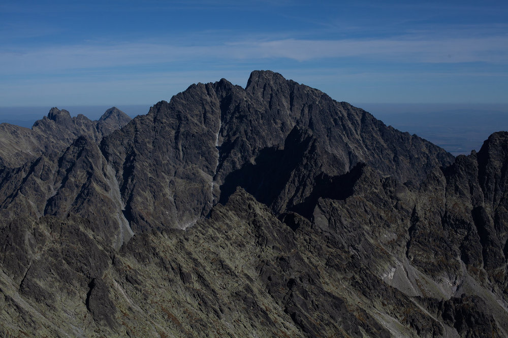 Kieżmarski Szczyt Szczyt na Słowacji Opis Kieżmarski Szczyt, w części literatury Kiezmarski Szczyt – zwornikowy szczyt o wysokości 2558 m n.p.m., położony w długiej południowo-wschodniej grani Wyżniego Baraniego Zwornika w słowackich Tatrach Wysokich, pomiędzy Granią Wideł na południowym zachodzie a Małym Kieżmarskim Szczytem na północy. Wikipedia Wysokość n.p.m.: 2 558 m Wyniesienie: 143 m Kieżmar widziany z Łomnicy .