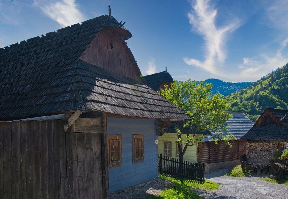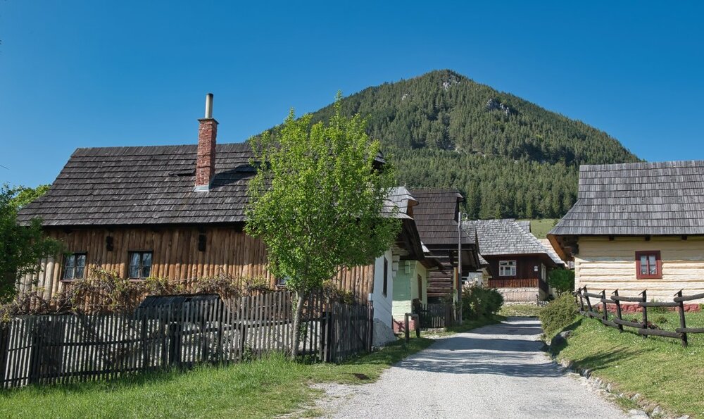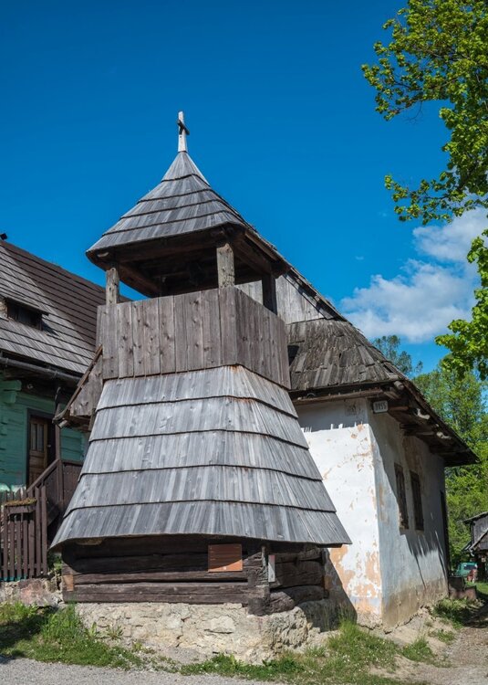 Słowo się rzekło ( w wątku o Górach Choczańskich) więc wypada napisać o tym jak spędziliśmy resztę dnia. Od Luczańskiego Wodospadu już niedaleko do Rużomberka, no a Rużomberok to dla mnie przede wszystkim Vlkolinec. Urocza wioska położona w Wielkiej Fatrze w Trlenskiej Dolinie na południowych stokach Sidorova. Jako, że porządnie zgłodniałem to najpierw był prawie bieg do restauracji regionalnej . Ten bieg okazał się strzałem w dziesiątkę, bo zamawiając miejscowy liptowski przysmak -harule, załapaliśmy się na ostatnie porcje słoninki. Ponieważ jedzenie w górach to ważna sprawa, więc przy okazji polecam Restaurant Vlkolinec i harule. To rodzaj placka ziemniaczanego z dodatkiem kaszy manny, świeżą bryndzą , szczypiorkiem i słoninką. Palce lizać ! Wejście do osady, która dziś formalnie jest dzielnicą Rużomberku stąd na niektórych domach podwójne tabliczki z numerami. Wieś była już znana w 1461 roku, postawili ją mieszkańcy sąsiedniego Białego Potoku jako osadę drwali i węglarzy. Pod koniec XVI wieku było tam prawdopodobnie 5 domostw. Vlkolinec podobnie zresztą jak Rużomberok należały wtedy do państwa zamkowego Likava. Historia wsi jest dość ciekawa i burzliwa, ale o tym można się dowiedzieć samemu na miejscu jeśli ktoś byłby chętny. W 1770 roku postawiono we wsi drewnianą dzwonnicę, która zachowała się nienaruszona do dziś... Wieś leży na wysokości 525-1019 m n.p.m.. Znajdowała się tam murowana szkoła jednoklasowa, obecnie mieści się tam stała ekspozycja, a dwójka dzieci w wieku szkolnym dowożona jest do Białego Potoku. W centrum wsi nieopodal dzwonnicy znajduje się kolejny ważny zabytek - 12 metrowa drewniana studnia na korbę ... " Wilkoliniec jest interesującą, nienaruszoną i dobrze utrzymaną osadą , złożoną z typowych obiektów zrębowych charakterystycznego środkowo-europejskiego typu. Nie jest znany żaden inny zespół mieszkalny, który można by było porównać z Wilkolińcem pod względem jednorodności" to cytat z wpisu wsi na listę Światowego Dziedzictwa UNESCO z listopada 1993 roku Gdyby nie turyści fotografujący smartfonami co się da i auta stałych mieszkańców zaparkowane przed domami, miało by się wrażenie, że czas się w tym urokliwym miejscu zatrzymał dawno temu, a i dziś popołudniu gdy znikną z uliczek oglądający, można poczuć się jak w dawnym Liptovie...kolorowe domki między którymi czas biegnie jakoś inaczej.... Nie wiem, czy jeszcze wrócę tu kolejny raz bo zdrowie już szwankuje, ale jak zamknę oczy to mam cały czas w głowie to ciche miejsce, które warto odwiedzić zwłaszcza tak jak teraz - poza sezonem. Ponieważ trzeba było przed powrotem spalić kalorie pochłonięte razem z harulami - poszliśmy jeszcze na Sedlo pod Sidorovom, żeby wycieczka była jednak bardziej górska. Na zdjęciu Malinô Brdo czyli Malina Skalka 980 m n.p.m. pod nią mieści się obecnie hotel i stacja narciarska , prowadz tam też szlak turystyczny z Rużomberka. Bardziej malowniczy widok jest na drugą stronę w kierunku doliny rzeki Revuca... Niestety wszystko co dobre szybko się kończy i trzeba było powoli wracać do rzeczywistości . To była bardzo udana niedziela ...