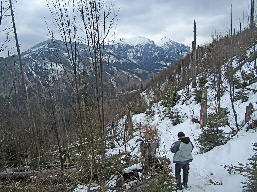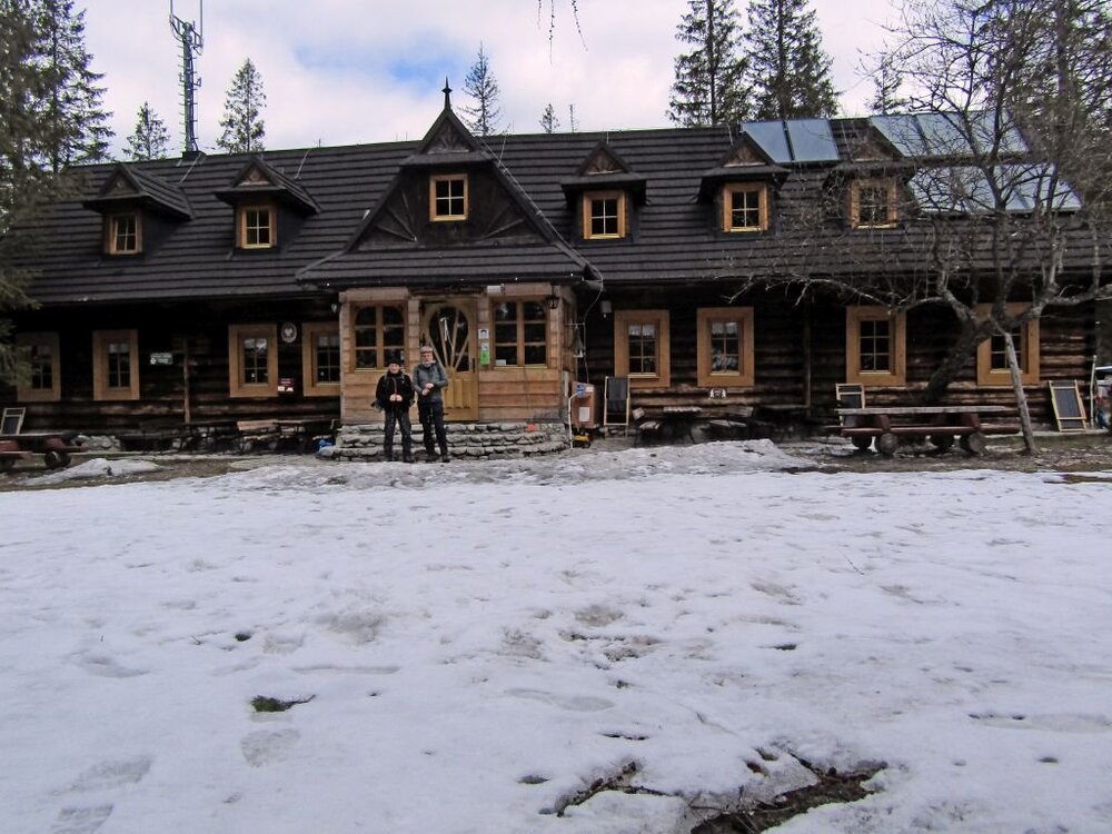 W dniu dzisiejszym razem z @Wernikspostanowiliśmy się trochę przewietrzyć.Wybór padł na reglową trasę Wierch Poroniec-Rusinowa Polana-Polana pod Wołoszynem -Schronisko Roztoka -Palenica. Pogoda jak się okazało średnia , na chwilę się rozjaśniło jak pałaszowaliśmy szarlotkę w schronisku. Jakieś tam widoczki były , ludzi niewiele , na parkingu byliśmy pierwsi.Rusinowa pusta i szlak do Wodogrzmotów też. Wspomnieć należy że ten czerwony to najstarszy znakowany szlak polskich Tatr i chadzali po nim wszyscy pionierzy. Co do warunków to typowo wiosenne sporo miękkiego śniegu , miejscami lód , skała , błoto.Dla każdego coś miłego. Od połączenia czarnego z czerwonym zdecydowaliśmy się na raczki , tak było lepiej i wygodniej,oczywiście niedaleko asfaltu były już niepotrzebne.Na zejściu do schroniska też żeśmy ich użyli do góry było już bez nich. Na drodze do MOK-a trochę ludzi szło nawet fasiągi jeździły. Przez chwilę było słonecznie i na pożegnanie Rysy się pięknie zaprezentowały. Parę fotek na początku powitał nas strażnik szlaku widoczek na Rusinkę coś tam widać odtąd przez spory kawałek na raczkach przy Wodogrzmotach miało miejsce wrogie przejęcie , ten oto czarny charakter wygonił Orzechówki z ławek i przejął ich styl życia szarlotka była super i widoczki z zejścia fajnie było.