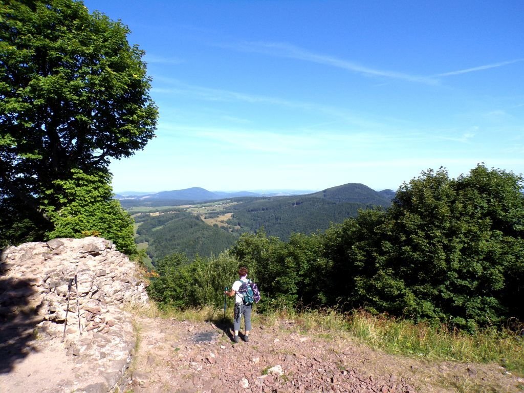 barbie609 moder Opublikowano 20 Sierpnia 2025 Udostępnij Opublikowano 20 Sierpnia 2025 W Sudetach dzień trzeci. Dziś miejsce które odwiedziliśmy po raz ostatni w 2017r. Góry Suche a konkretnie szczyt Rogowiec z ruinami zamku ,notka historyczna:https://pl.wikipedia.org/wiki/Zamek_Rogowiec Zaczęliśmy znanym nam szlakiem w Grzmiącej , jest tak jak przed laty , na końcu asfaltu mieszczą się ze cztery auta , jeśli dwa z nich mogą zjechać bez stresu na dziurawe pobocze , i tu trzeba być czujnym bo nigdzie nie jest oznakowane ,że żółty schodzi z drogi w prawo i przeskakuje potoczek znikając w krzakach . My pamiętaliśmy,że tak jest więc bez problemu ruszyliśmy żółtym w stronę zamku . Widać ,że kiedyś były to zamieszkane miejsca , teraz dziczeją w szybkim tempie , widać wyraźną różnicę od 2017r. szlak dziczeje ,to kiedyś był droga wysypana melafirowym tłuczniem słońce dość mocno operuje buczyna się pięknie rozrosła , tu to typowy dolnoreglowy las na szlaku pusto , docieramy wreszcie do zamku szczyt trochę zarósł co ograniczyło nieco widoki ale klimacik zachował po popasie schodzimy w stronę Skalnej Bramy tablica na skale jest na miejscu schodzimy na Przełęcz pod Gomulnikiem. Czeka nas tutaj trochę nowości , wyznaczono nowe szlaki , na przełęcz doprowadzono prąd. Na Gomulniku zamontowano platformę widokową i wyznaczono szlak , który schodzi na koniec Grzmiącej , czyli tam gdzie dawniej chadzaliśmy na mapę teraz jest szlak i dopiero tutaj pojawiają się ludzi.I my ruszamy zapoznać się z nowością . Po drodze ujawnia się Szpiczak z wieżą zaś z platformy na szczycie widoczek jest całkiem zacny . Wielka Sowa i Ślęża , całkiem całkiem. schodzimy do wsi i jeszcze podjeżdżamy na tzw Kamyki w Głuszycy , miejsce fajne ale jak wiele tutaj skażone piętnem RIESE. przyjemnie było znowu odwiedzić te miejsca. 3 Cytuj Odnośnik do komentarza Udostępnij na innych stronach Więcej opcji udostępniania...