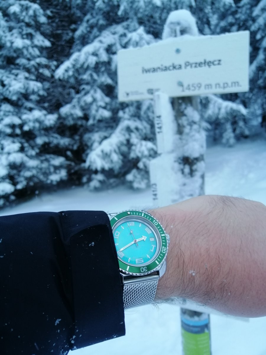 pmwas Opublikowano 5 Grudnia 2025 Autor Udostępnij Opublikowano 5 Grudnia 2025 Ja w Tatry zabieram różne rzeczy. Głownie wodoszczelne ruskie Amfibie czy Kamandirskie... Czasem Citizena... Ale czasem biorę coś starego... A na Pyszniańską wziąłem coś z okresu świetności Pysznej, zegarek który niby również w tamtych czasach na Pysznej mógłby się znaleźć... ...gdyby Niemcy odwiedzali wówczas Pyszną Bo to Glashuette z okresu chyba już nazistowskiego, albo tuż przed dojściem Adolfa do władzy. Piękny zegarek, tak swoją drogą... Mam nadzieję, że duchy Pysznej wybaczą mi faux pas, że na wyprawę poświęconą zniszczonemu przez Niemców schronisku wziąłęm niemiecki zegarek... 2 Cytuj Odnośnik do komentarza Udostępnij na innych stronach Więcej opcji udostępniania...