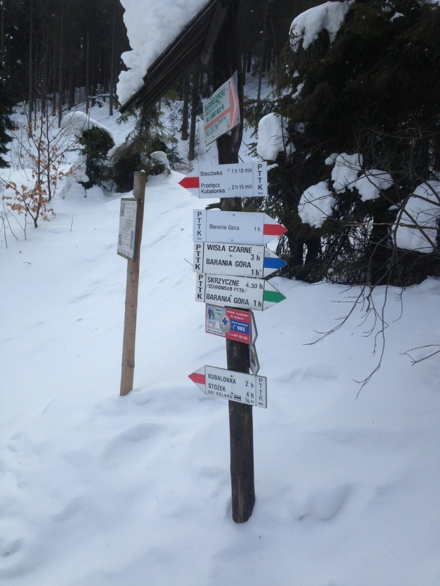 pmwas Opublikowano 6 Grudnia 2025 Udostępnij Opublikowano 6 Grudnia 2025 (edytowane) Do Wisły mam względnie niedaleko, zatem często bywam... a raczej bywałęm póki mnie nie zatrzymywały obowiązki rodzinne... Z reguły wybór jest prosty - z Wisły na Czantorię i z powrotem, bo to szybka przebieżka i przyjemne czeskie schronisko nieco poniżej szczytu... Ale tym razem w Wiśle akurat byłem na cały tydzień, a Czantoria była tylko wstępem. Jak widać - warunki wciaż zimowe, ale co mi tam - to tylko Beskid. Następny dzień rozpoczynam pod krótszym ze słynnych wiaduktów niedokończonej trasy kolejowej do Zwardonia. Tak - pierwszy przystanek - Stożek. Postój krótki, bo czas naglił (liczyłęm na zrobienie długiej trasy), widoki żadne, ogólnie raczej fajny spacerek niż ciekawa wycieczka. Ale zejśxcie ze Stożka na Kubalonkę (górą, bo tam chyba są dwa szlaki) już nieco ciekawsze... Z dużym naciskiem na nieco. Ogólnie w Beskidach nie lubię tego, ze w zasadzie cała wycieczka sprowadza się do łażenia po lesie, czyli tego, co w Tatrach jest najnudniejszym pierwszym i ostatnim etapem wyprawy. Jeszcze z fajną ekipą bywa weselej, natomiast Beskidy samemu są mocno "kontemplacyjne" i trzeba mieć nastrój, bo trasa po prostu bedzie raczej nudna i monotonna. Oczywiście to tylko moja opinia, bo znam takich (w tym mojego rodzonego brata), co Beskidy lubią, a Tatr nie. Na Kubalonke zszedłem dosc wcześnie i stabnąłem przed dylematem, czy szturmować Baranią, czy nie, bo dzień jeszcze krótki. Finalnie zdecydowałem, że idę. Droga dłuuuga, ze łomatkobosko. Miałą łądniuejsze momenty, ale znów - długi i ciagnący się w nieskończoność spacer po lesie. Do tego zimno i sił ubywa szybciej niż w bardziej sprzyjających warunkach. Na etapie tego drogowskazu miałem już serdecznie dość, ale już dolazłem tu, to cóż było robić - poszedłęm dalej. ] W schronisku postój na coś w rodzaju podwieczorku. Czas już nagli bardzo bardzo i trzeba było ruszać.Się baran na Baranią wybrał, normalnie pogratulować . Oczywiście - stąd już bardzo blisko, ale nogi miałem dawno wejdzione w cztery litery i każdy kolejny krok to już żadna przyjemność, zwłaszcza że Barania to... ...tylko Barania. Cytując słynnego pingwina "białawo tutaj"... Jak widać już troszkę zaczynało być ciemno, wiec minąłem wieżę i rozpocząłem zejscie do Wisły Czarne. I tu zaczęły się schody. I to strome. Otóż o drugiej stronie zbocza zaskoczyły mnie mocno warunki na szlaku, a konkretnie fakt, ze szlaku po prostu nie było. Zasypany śniegiem miejscami sięgającymi do połowy uda, czego o tej porze roku się już jednak nie spodziewałęm, wszak poza górami już wiosna za pasem. Do tego nikt tędy nie szedł i nie było żadnych śladów - nic. Zejscie na azymut, ale przecież nie znam Baraniej tak dobrze, żeby na azymut zejść do Wisły. Muszę powiedzieć, że byłęm troszkę w kropce. Mogłem po prosu wrócić na szczyt i do schroniska, ale nie bardzo mikałem czas na taki odwrót.Albo mogłem dalej szukać jakiegokolwiek oznaczenia szlaku, które jednak były - w tym miejscu pozbawionym lasu - przysypane śniegiem i nie było szans na ich znalezienie. Trzeba było wejśc w las i szukać na drzewach, ale las spory, więc ciężki temat. Ale jak się szuka, to się jednak znajdzie, wypatrzyłęm gdzieś jakąś tablicę, a skoro jest tablica dla ludzi, to pewnie gdzieś przy szlaku. Potem jeszcze triochę szukałem na wyczucie i w końcu znalazłęm! Pojawiłą się przede mną ścieżka. To znaczy najpierw znalazłem ślady czyjegoś odwrotu - widać było, że ścieżka mu si,e skończyła i po krótkim brodzeniu w kopnym śniegu ktoś zawrócił, a potem juz ewidentna ścieżka i znaki. Do Wisły dotarłęm o zmroku, ale... no właśnie. Ostatni autobus daaaawno już odjechał i czekał mnie jeszcze nocny spacer do centrum Wisły, a to spory kawałek. Aleto już po chodniku, wiec bez problemu. Od znalezienia ścieżki dostałem (chyba ze szcześcia) przypływu świezej energii na zejście i dziarsko do centrum doszedłem. W plecaku miałem jescze trochę wody... zimnej. Widać jaka byłą temperatura, skoro mi woda w plecaku zamarzła :D Ogólnie super wycieczka, choć troszeczkę przeszacowałem swoje możliwości, no ale... to wszak tylko Beskidy! Edytowane 6 Grudnia 2025 przez pmwas 3 Cytuj Odnośnik do komentarza Udostępnij na innych stronach Więcej opcji udostępniania...