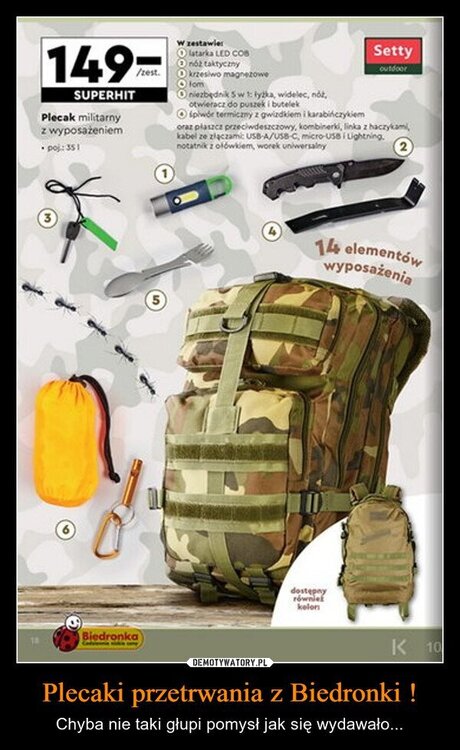 barbie609 moder Opublikowano 15 Września 2023 Autor Udostępnij Opublikowano 15 Września 2023 https://militaria.pl/p/gwizdek-survivalowy-mil-tec-6w1-olive-1669076 niby taki sobie gadżet ,ale jeśli znajdziesz w cza ...... no .. w głębokiej potrzebie 1 Cytuj Odnośnik do komentarza Udostępnij na innych stronach Więcej opcji udostępniania...